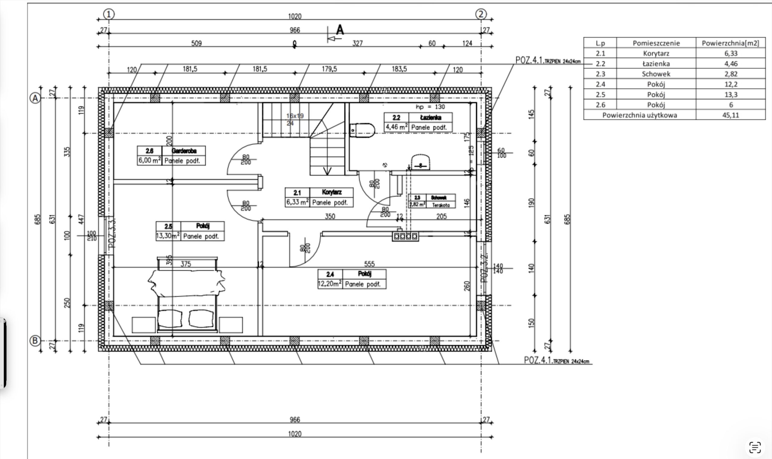 Poddasze to strefa prywatna — pokoje dla domowników, łazienka i praktyczne miejsce na przechowywanie. To projekt, który łatwo “ustawić pod rodzinę”: rano szybkie tempo, wieczorem spokój, a w weekendy — taras, grill i pies, który pierwszy sprawdza ogród.