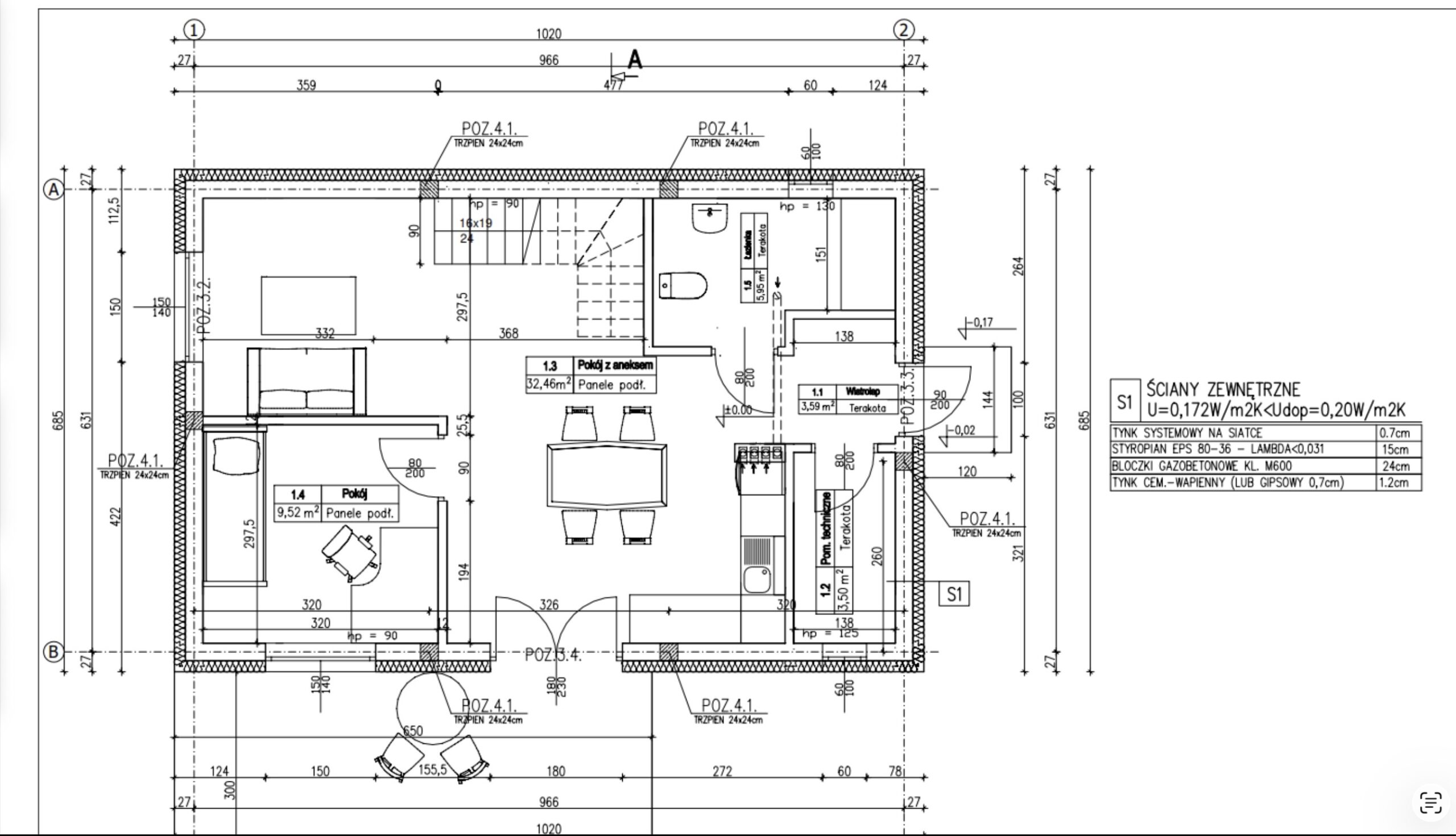 Na parterze wszystko kręci się wokół wspólnej przestrzeni: jasny salon z jadalnią i aneksem, wygodny układ na co dzień i dodatkowy pokój, który możesz przeznaczyć na gabinet, pokój gościnny albo sypialnię „na teraz”.